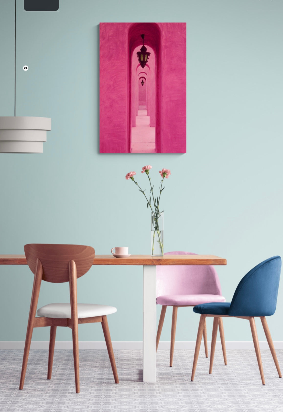 This expertly crafted inch wall art features a stunning maze-like castle in various shades of pink. Its mesmerizing illusion effect adds depth and intrigue to any space. Elevate your decor with this unique piece that boasts a touch of mystery and charm.