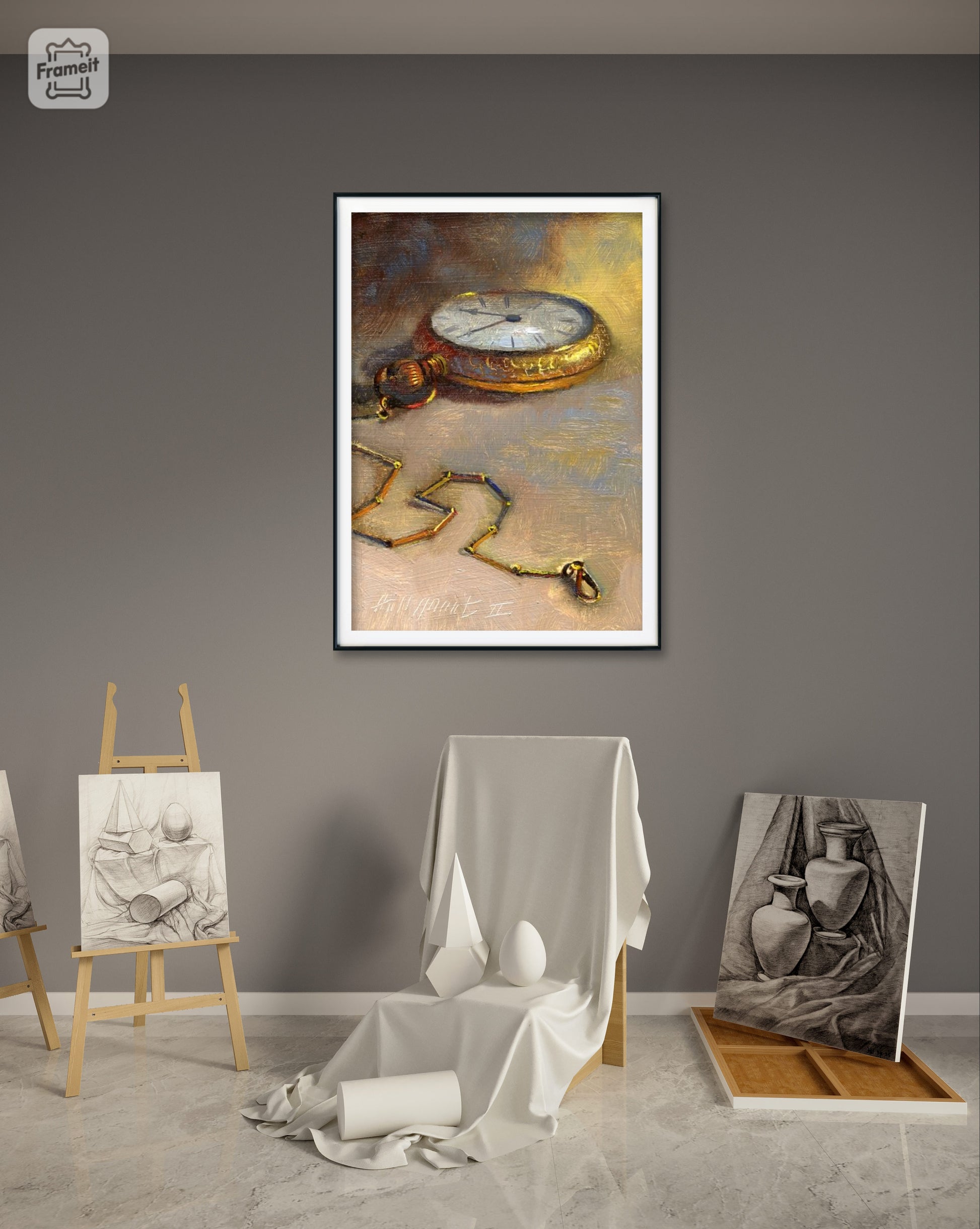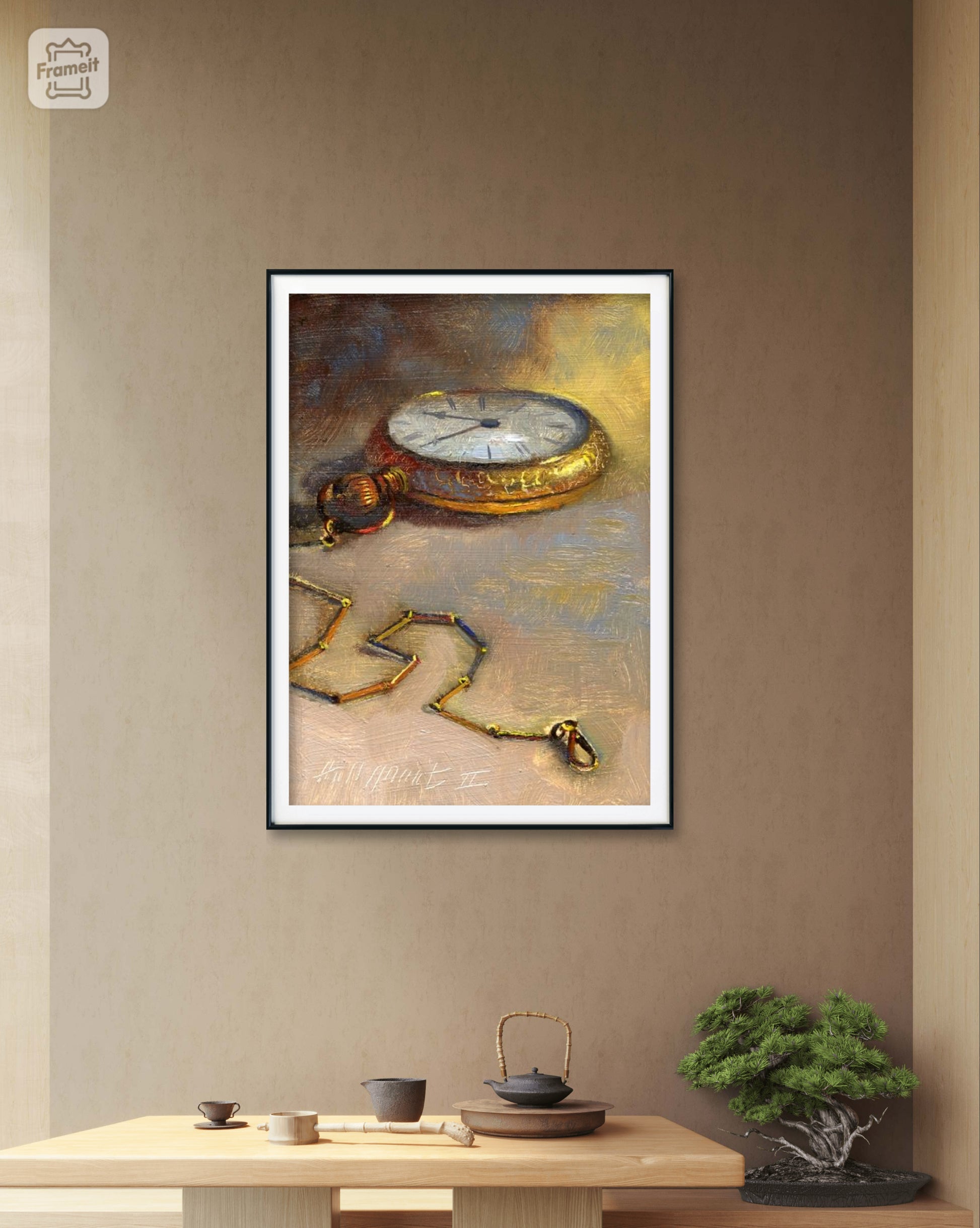 This beautifully crafted pocket watch artwork, framed in sleek black, is the perfect addition to any art collection. With its retro design and expert detailing, it's a must-have for any timepiece enthusiast. Display it with pride and admire the intricate craftsmanship. A timeless piece that's sure to captivate and add sophistication to any room. Get this beautiful painting for your rooms in India. COD available. 30 days return policy. Best quality in the industry.