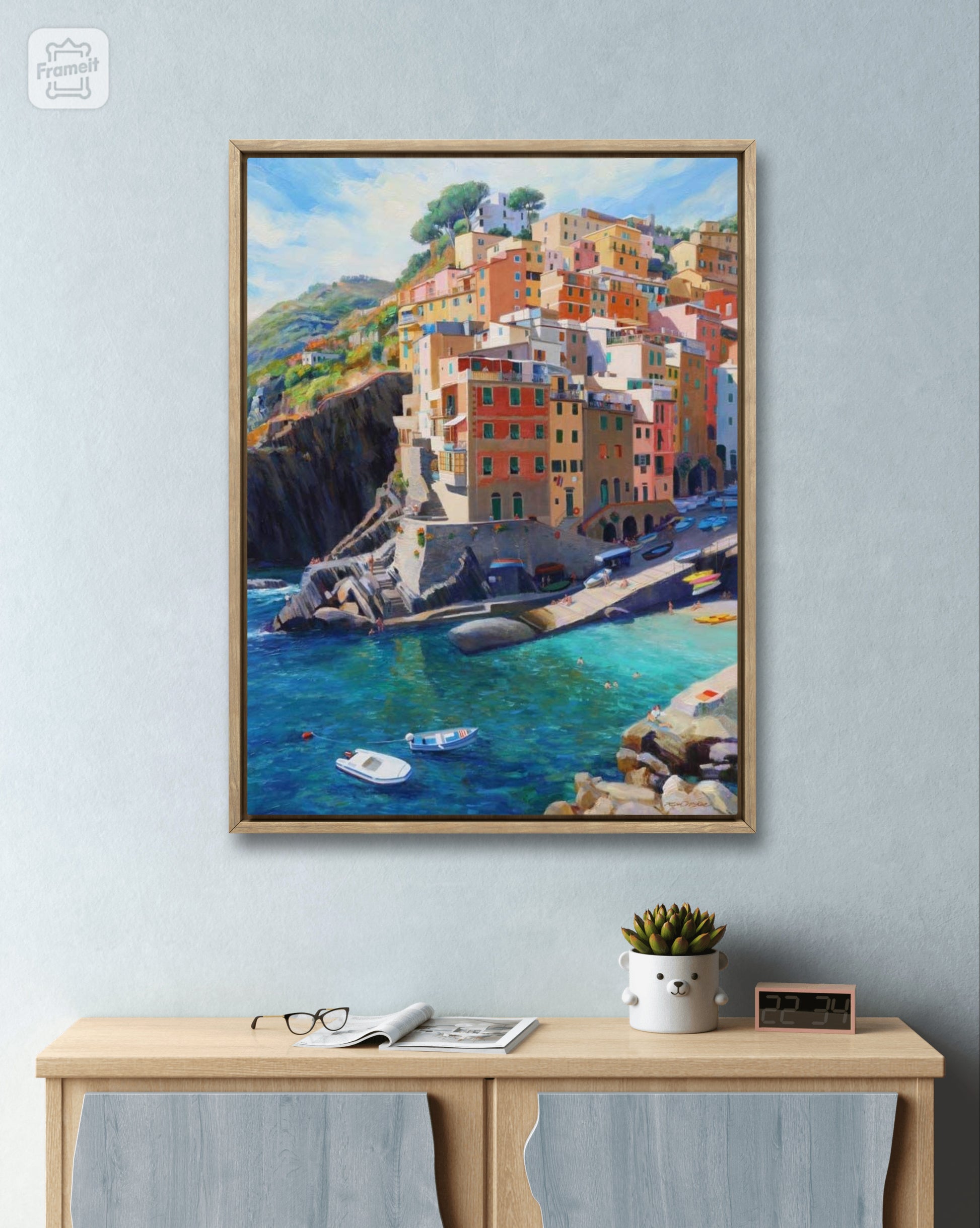 Immerse yourself in the beauty of Greece with our "Let's Go To Greece" painting. Featuring a stunning landscape view of Greek architecture, a lush blue sea, and majestic mountain-like rocks, this piece captures the essence of this picturesque country. Add a touch of elegance and culture to your space with this expertly crafted artwork.