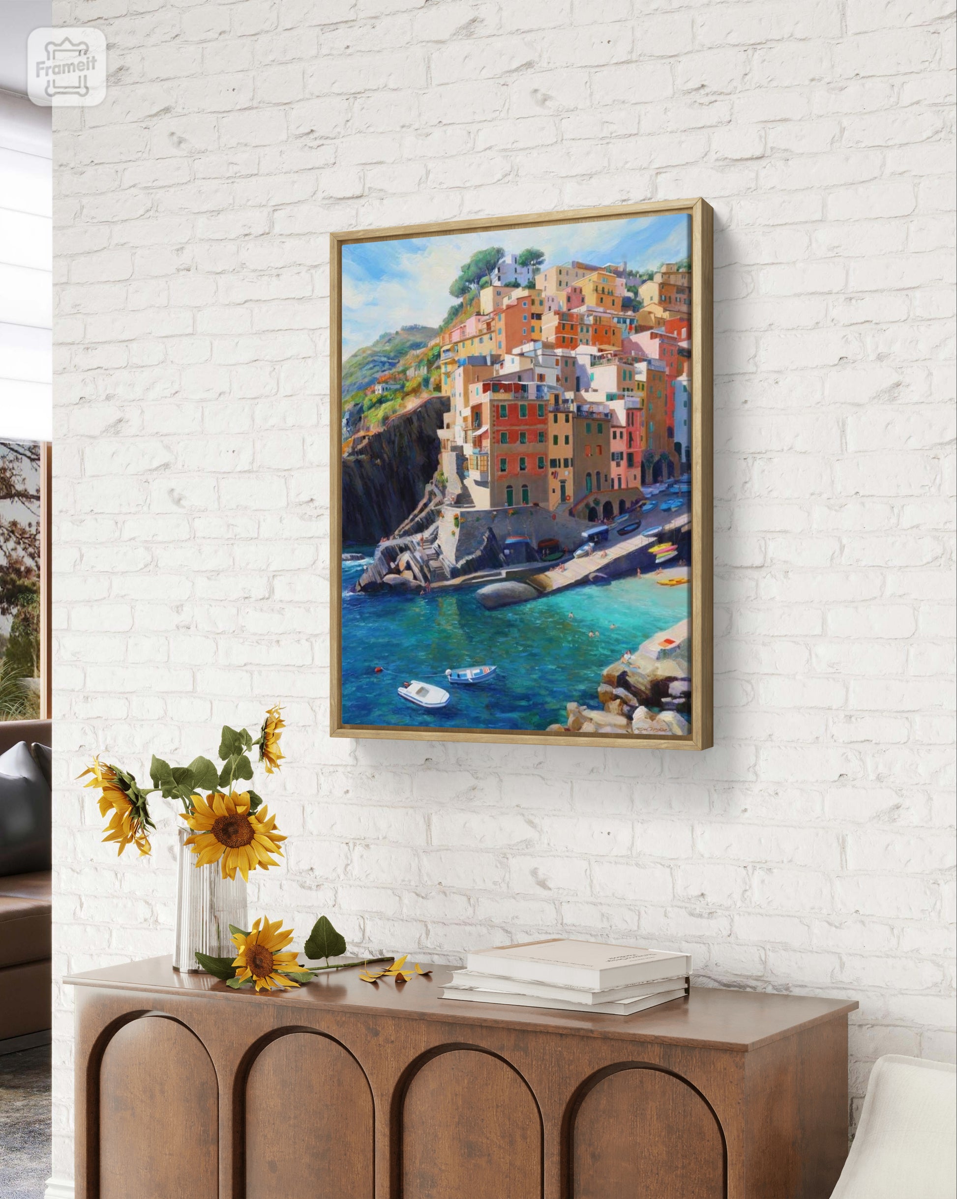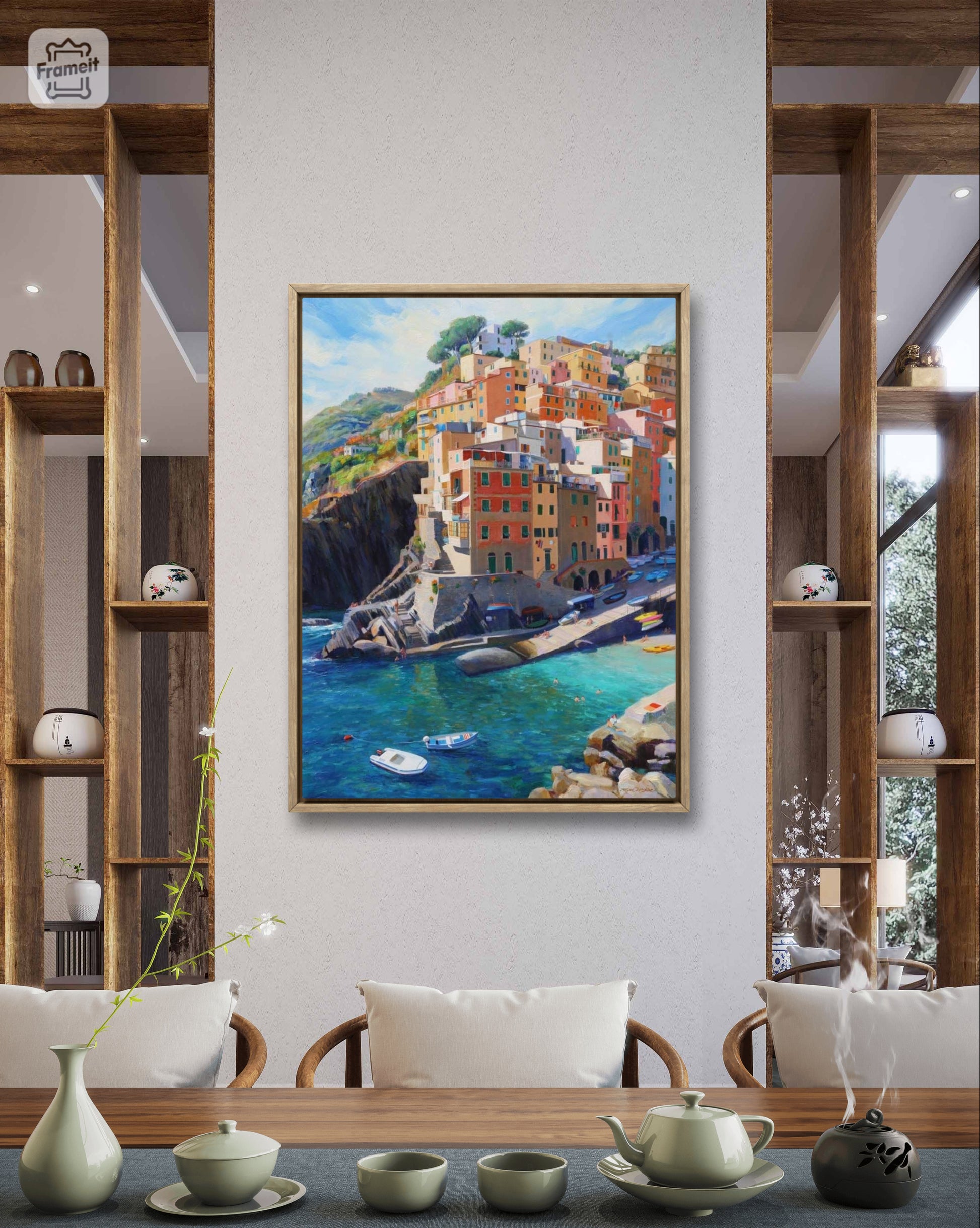 Landscape wall painting, Canvas in floating black and white frame.
